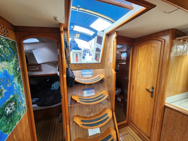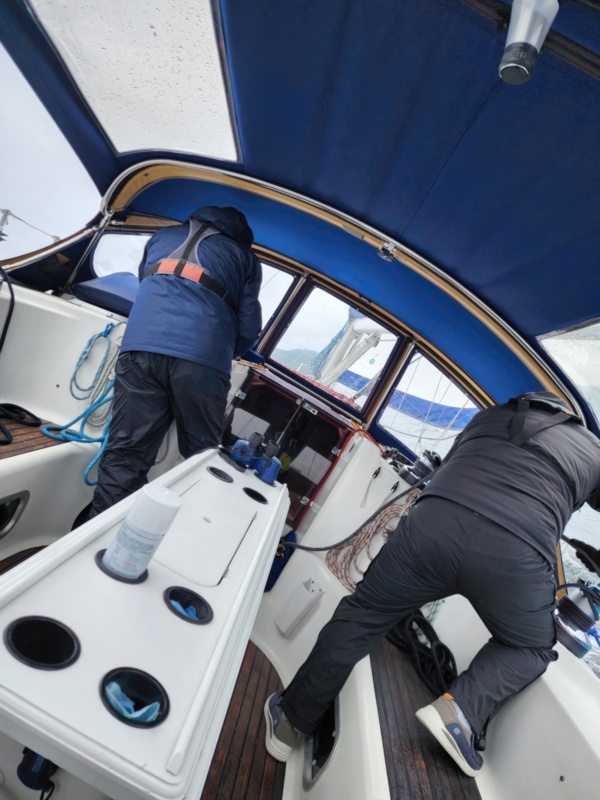 Christina cooks a great meal of baked salmon and various sides. For my part I brought two boxes of wine. Unfortunately Steven is still feeling seasick and unable to join the rest of the crew for dinner. The discussion over dinner runs to current state of the world and I can't help sharing my somewhat radical views on it. Luckily the company is open-minded and the conversation is satisfyingly intellectual. We cover pretty much everything that I discussed with ChatGPT in my book 'Resonance' - it is a rare treat to have humans meaningfully engage on the subjects. Captive audience but still. Cool. Settling in for the night, the saloon livingroom converts to my bedroom. We'll go ashore tomorrow.