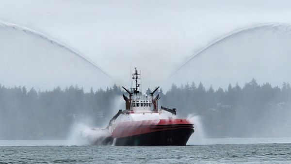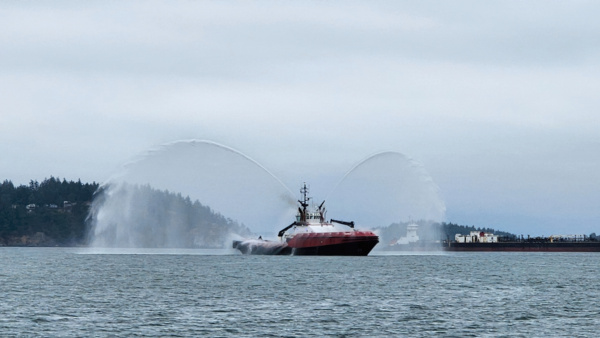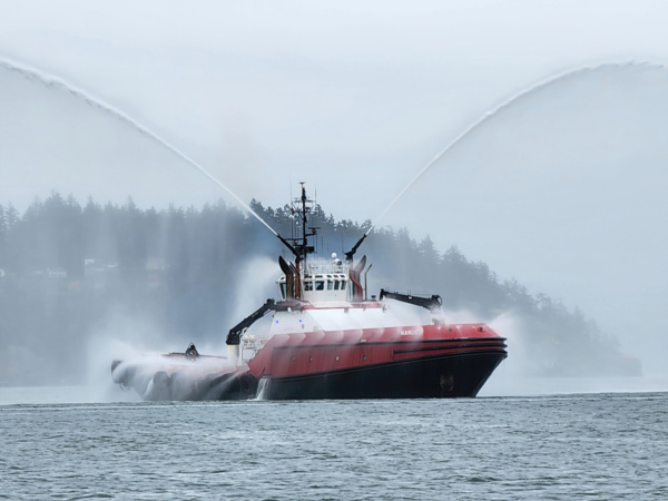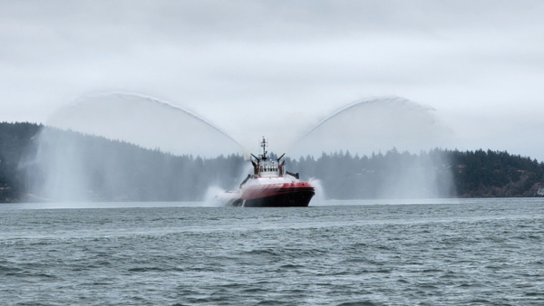 Motoring out of the marina we encounter a fire/pilot boat. Whatever the purpose of the water display, safe bet it's pretty clean now.