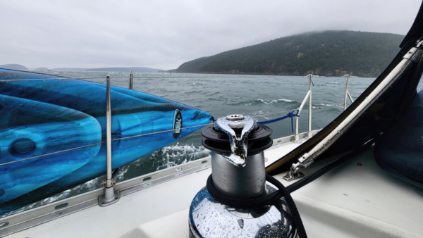 Winds are gusty and cold, rain is intermittent, and currents swirl about in unpredictable ways creating rapids-like waves in some spots.