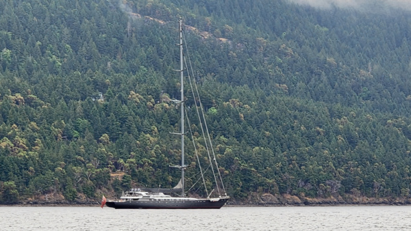 Our first destination is Rosario resort, where there are moorage buoys we can tie to overnight. There is a massive sailing ship anchored outside the bay (later in the trip we spot it carrying a seaplane, so it's literally an aircarft carrier). Can't seem to find any info on it but reception is spotty at best and there's sailing to do.