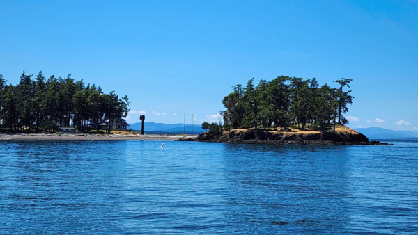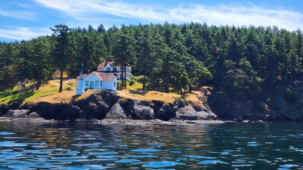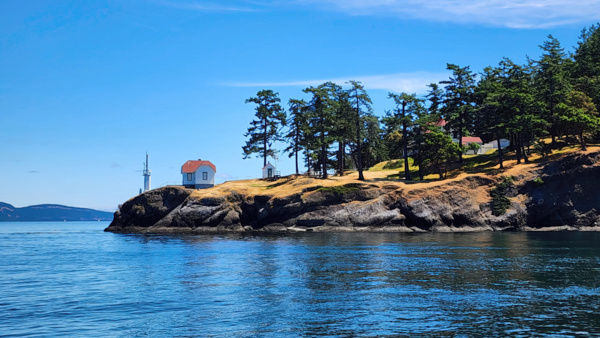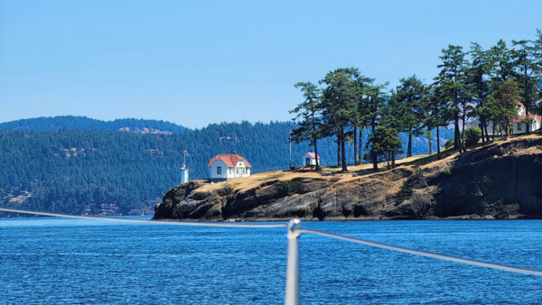 With the wind gone, we motor to the Turn Point lighthouse. Scenic.