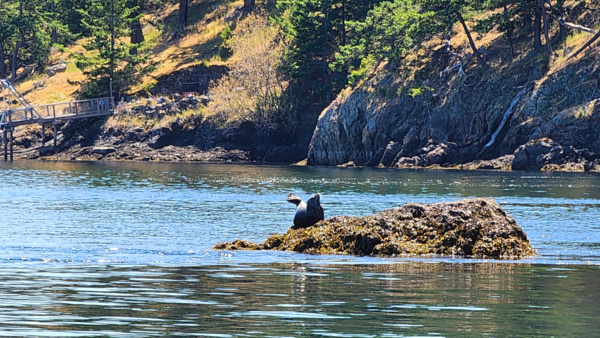 Next destination is Roche Harbor, just to check it out. Still no wind so we're under diesel power. A bit of a back story - prior to departure for the trip, I mentioned to the crew at the shop that I'll be on a boat. 'Like Lonely Island?' was Tristan's response. Yep. Sam had no idea what we're talking about so we had to make her watch the video (warning - explicit). After which I sad there will probably not be any mermaids. To which the reply was there would likely be seals, and that's close. Point. So when I took the pictures below, I had to text her, with caption #notamermaid.