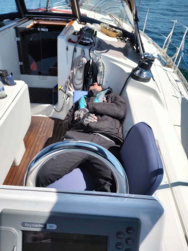 Light wind makes for light workload and I decide to take a nap. Scott is kind enough to record it for posterity.