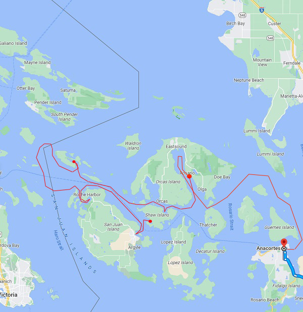 Then on to our next stop, Friday Harbor. We will go ashore briefly, get some foodstuffs at the store, and pump out the holding tanks. All part of the experience and the training. Must learn the daily realities and the operation of all the systems.