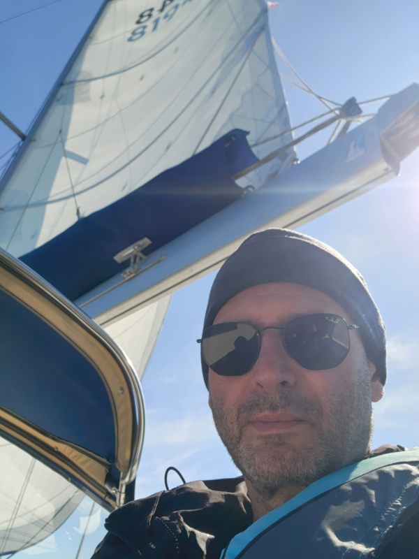 Day 6 - ASA104 on-water and written test The new day is sunny again, and while we do find some wind here and there it is mostly light.