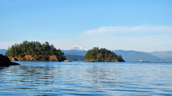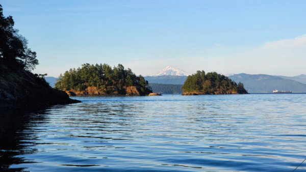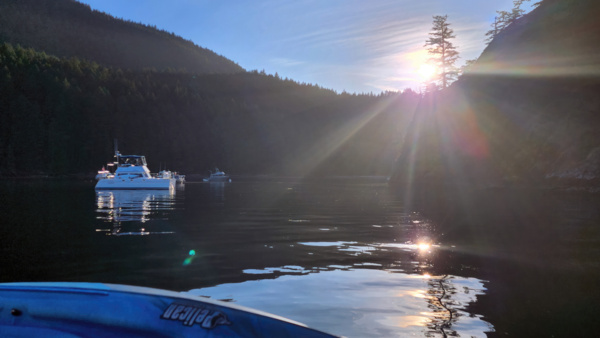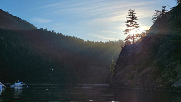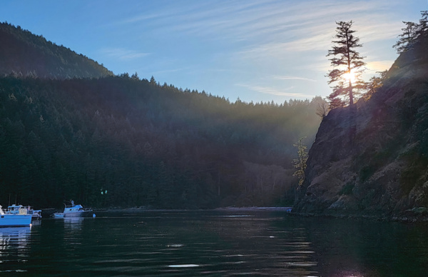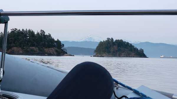 The pictures aren't great but prove it happened. Our next and final moorage is Eagle Harbor on Cypress Island, where we again get to practice mooring to a buoy. It's a spectacular spot and the sunset doesn't disappoint.