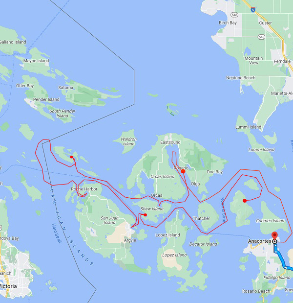 Tomorrow is a relatively short leg back to Anacortes. Hoping for some sailing, but we shall see what the weather will do.