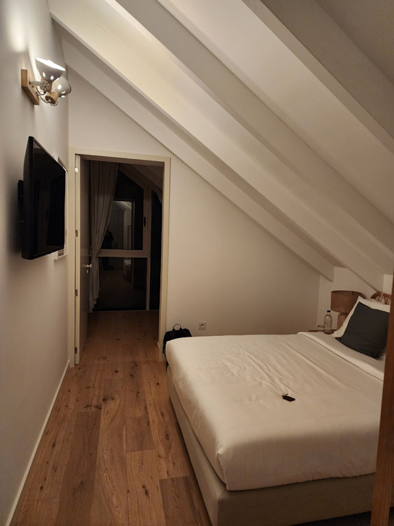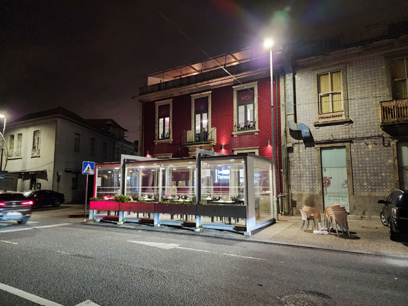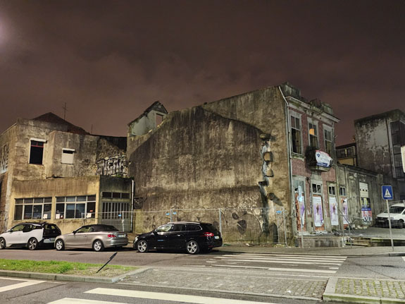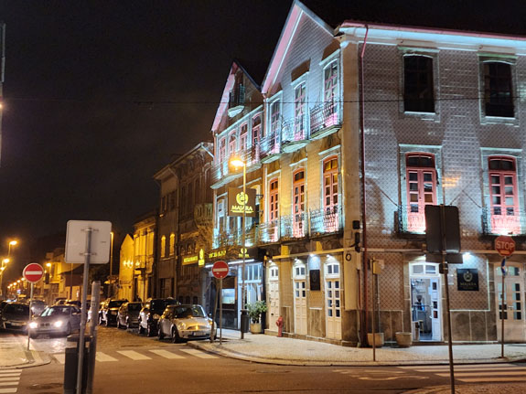 Linda had suggested that I explore Douro valley on the way, but by the time I get close I'm very tired. I stop at a rest area, fold down the rear seats and get an hour of sleep. This helps a lot - the double vision is now gone though I'm still tired. I had added a couple 'stops' in google maps in the valley, but when I resumed travel the app decided to ignore them. By the time I realize this I'm already past and only an hour away from Porto. It's also getting dark, and I'm falling asleep. So another one hour nap at a gas station, pick a hotel via expedia, and continue on. I suppose I easily could have just spent the night in the car instead of a hotel, but shower and warm bed sounded appealing. The hotel is very cool, in the Matosinhos neighborhood near the beach and the sea port. Parking is tough to find though, so I end up pulling into a parking garage that is very tight but is only a block from the hotel.