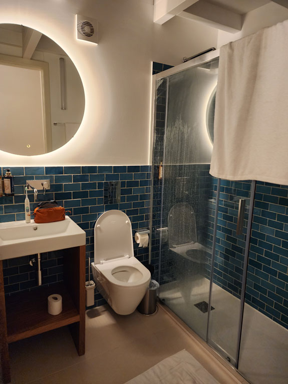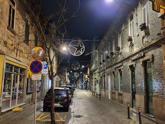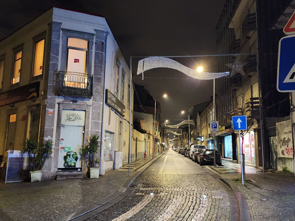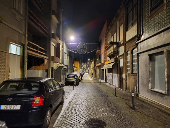 At this point it's 9 PM but my two naps did their job and I still have some energy to go walkabout. It's about 50F, some wind and occasional rain. The streets are not crowded. The area is known for its fish restaurants and they look pretty busy. I wonder around just to get a feel for the place.