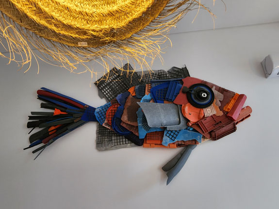 The fish sculpture below was created by a local artist from plastic trash picked up on the beach. Clean up the environment, create art, and make a thought-provoking statement all at the same time.