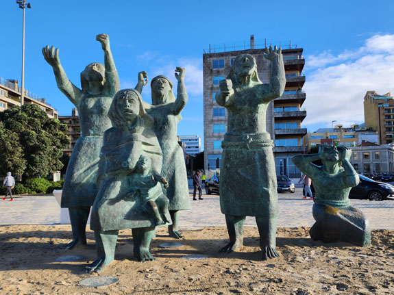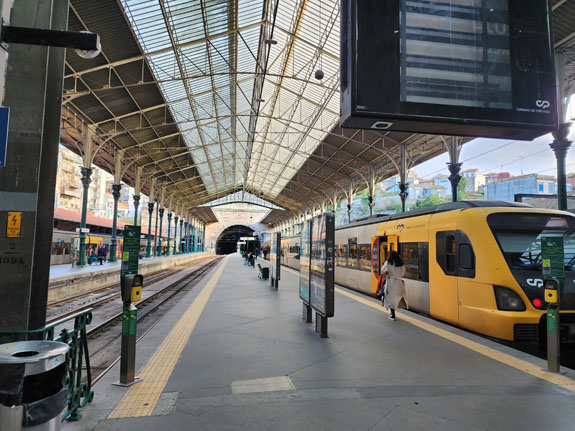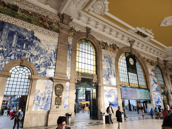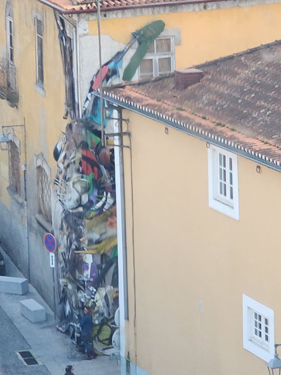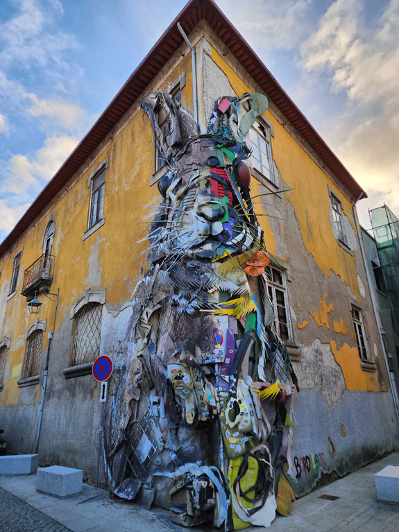 There is a statue/artwork called 'Half Rabbit' by Portugese artist Bordallo II. It is visible from the cable car and we later check it out from street level a well. It is made of trash. A full day and I'm tired. Tomorrow is a major bucket list item - watching the big waves at Nazare. Forecast shows waves picking up, being about 15' and picking up to 18'+ later. I invite Linda to come along. She has commitments in the morning but is free the rest of the day, so we agree I would pick her up around 11am. She buys a bus ticket back to Porto. I take the Metro to the hotel. It is underground in the city center but runs in the surface outside. The line goes directly in front of the hotel but the nearest stop is about five blocks away.