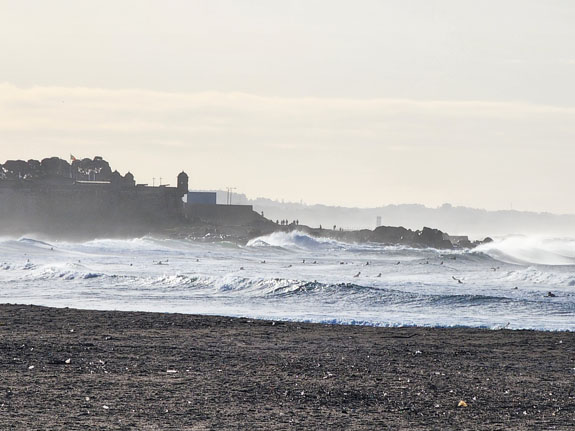 The surf here appears to be 3-8' and there are lots of surfers in the water. I take a few pix then google the bus I should take to get into the city. Route 500 is a double decker, and I score the top front seat. The rounte follows the coast and then the river bank, so this is like a tour bus basically.