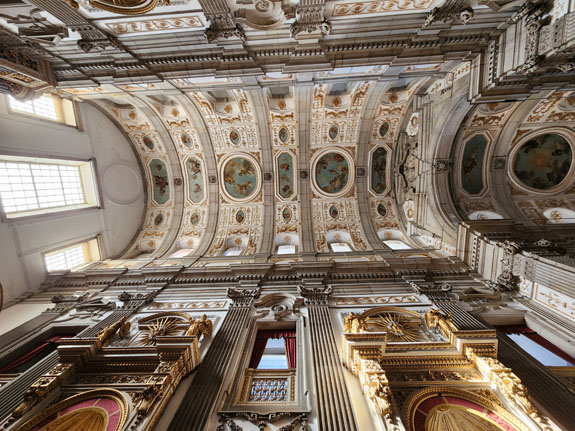 Along the way there are two churches side by side. Apparently having churches immediately adjacent was illegal in some way, so there was a very narrow vertical house built between them. Just to say that each church is adjacent to the house, not the other church.