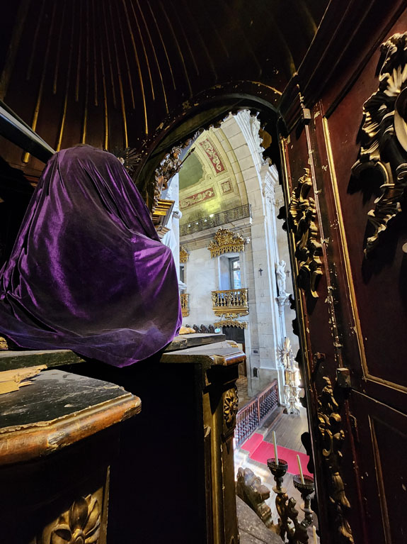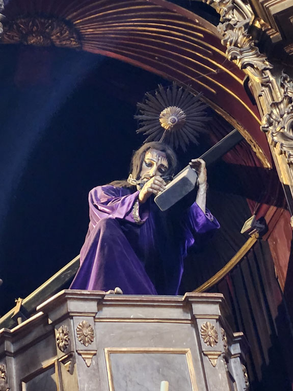 After climbing some stairs there is a spot where you can go behind the Jesus statue and look over its shoulder into the church. Kind of odd but interesting.