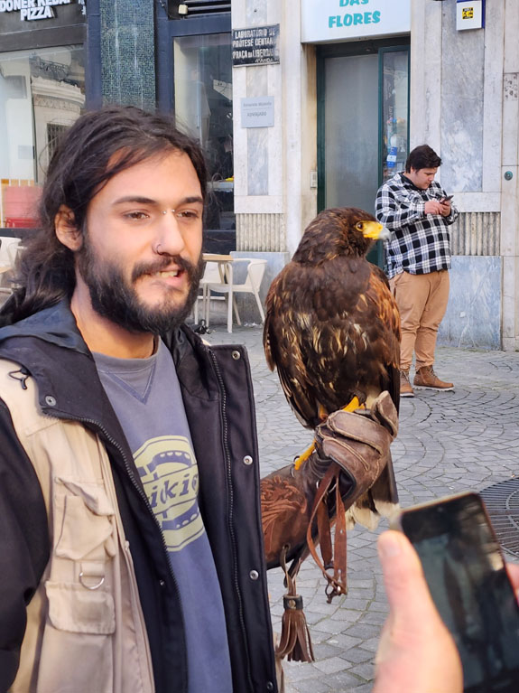 Along the way there is a restaurant where a guy with a bird of prey (hawk, falcon?) is there to keep pigeons away. Cool form of pest control.