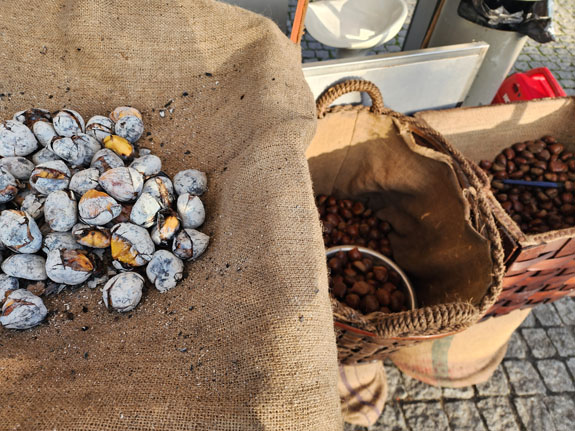 The bridge over the river has a bunch of vendors near it, including one selling fresh roasted chestnuts. I buy a bag and eat a few, as this reminds me of time in Italy on the way to the US in 1980. It was winter in Rome and we used to buy chestnuts from street vendors there as we walked around.