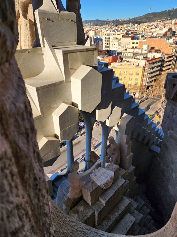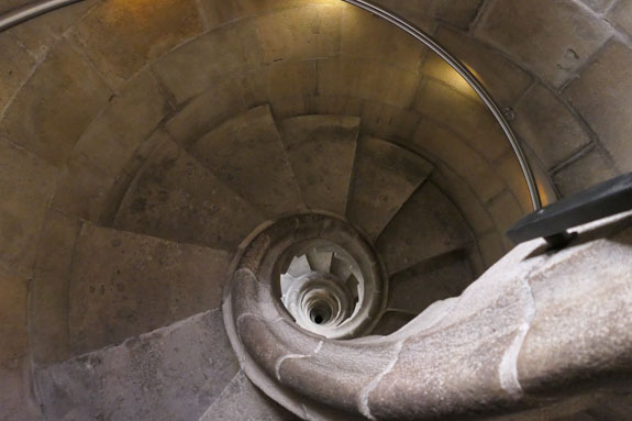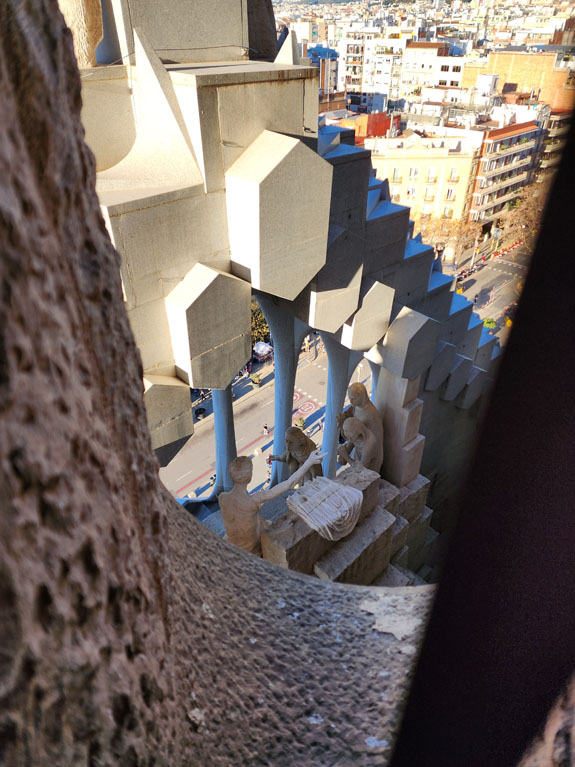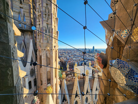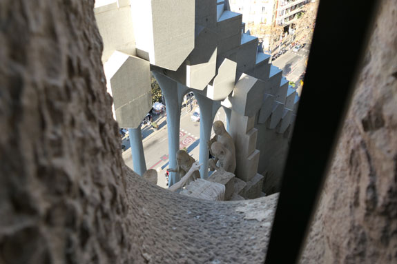 Day 8 - Barcelona, Margalef, drive to Madrid. I get up early, snack on Zone bars and in-room instant coffee, and take the subway to Sagrada Familia. I'm one of the first people in and manage to get some time completely to myself in some spots, and still not too crowded in others. There is an elevator to the top of the tower, then you walk down the spiral staircase.