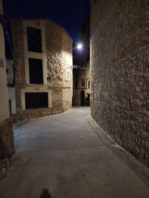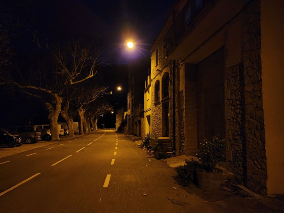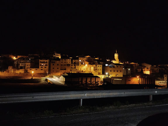 Overall the experience is a bit surreal and a cool contrast to Barcelona earlier in the day. Moving on, the road becomes a bit marginal being one lane and surface fairly broken up. At least it's dark :). Still no traffic, I only encounter one car before I get back to the freeway.
