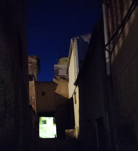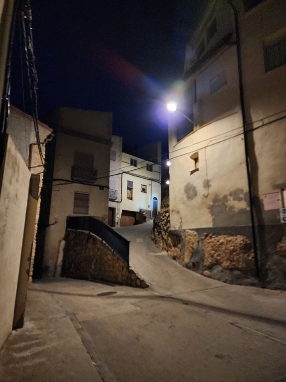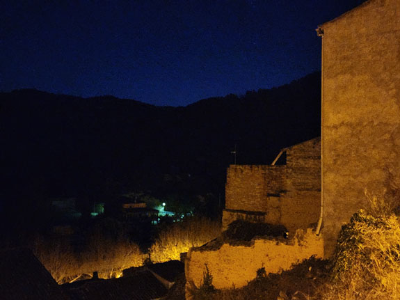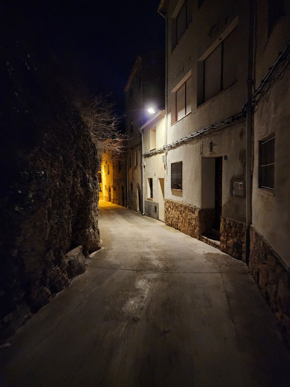 A couple more castle-villages along the way. They are lit up but I see no people or cars.