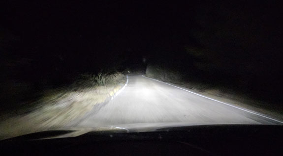 I finally get to DRIVE! The default limit on back roads is 90kph and I actually struggle to reach it. Roads are tight, with curves sometimes coming in long strings at one-per-second pace. Suface is good and there is zero traffic. Occasionally the road drops to a wide one-lane.