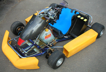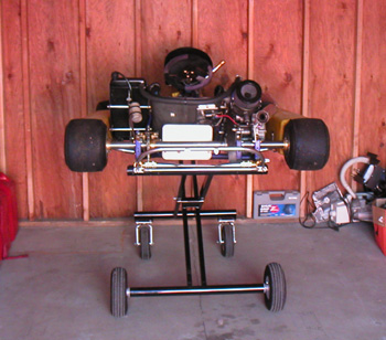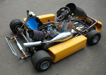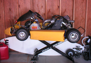 06/02/03 Changed my storage space for a slightly smaller one today, so while I was moving the kart decided to get it battle-ready. Swapped gearbox fluid for Redline Synthetic ATF (it shifted much better with this before), refilled the cooling system and fired it up. After a significant number of tries that is. It required cleaning the sparkplug and cranking the motor for a very long time before the pump primed and engine fired up. The cranking is accomplished by wrapping a nylon strap around one of the rear tires and pulling like mad. A bit of a pain (literally) but the kart is now ready to go.