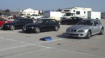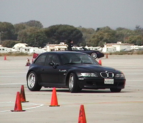 10/06/01 Autocross at former El Toro Marine base. First autocross for the Coupe, and the first one for me in two years. Rather educational. It's the safest and best way to find out what the car is like at the limits, and beyond. Quite a bit of fun, too. I met up with a couple fellow M Coupe owners whom I previously only knew through an Internet message board. Always cool to put faces with virtual names. I started out kinda slow, but with the help of a few tips was able to improve considerably throughout the day. Of course I made a video of my best run :)