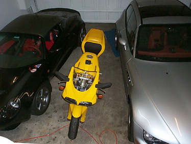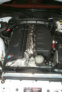 After a trip to the coast, the Coupe now has 475 miles on it. It's a lot of fun - passing is totally effortless, even keeping RPM below 5500 for breakin period. More than once I'd press half-way on the gas, leap around the car in front, and look down to see the speedo edging past 100. Neat! 6/10/01 Had to miss the track day in Seattle yesterday due to work, so as a consolation today (it being my birthday and all) I took a quick run in the coupe on my favorite local twisty road. The video (9.8M) shows that in the coupe I do this run 10 seconds slower than in the Lotus. Since this is a public road and I'm not pushing either car too hard, it is not really a direct indication of performance, but rather the relative degree of confidence each car inspires... Also, running the two clips back to back gives a good comparison of what each is like to drive :) 7/5/01 Taking some pictures in the garage, decided to snap one of the motor.