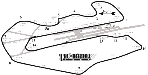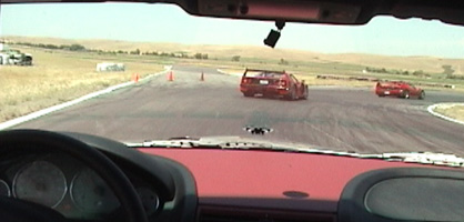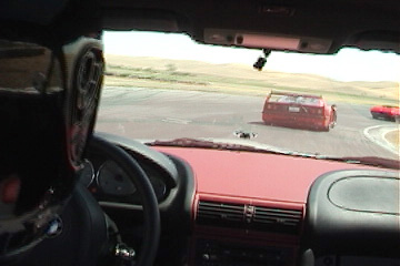 It's a lot of machinery in a small space. Pretty impressive, too, getting 315hp from 3.2 liters. And gas mileage is about the same as the Focus, 20-25MPG so far. The car now has 750 miles on it, and is scheduled for its first service in a couple of days in preparation for its trek to California. 7/9/01 The Coupe is going to California. On the way I'm stopping exacly half-way at Thunderhill racetrack for a Lotus club track day. The car is an awesome GT - the miles just disappear (500 of them in just over 6 hours, to be exact ;) In the mountains of southern Oregon and norhtern California, entertainment is provided by a previous generation M5 who was in the mood for a run through the curves at speeds rarely seen in this country. Traffic slowed us down less than a minute before passing two cop cars by the side of the road. We get away with it :) There are several automatic radar-driven speed signs along the road, which is when I discover that my speedometer reads 10% too high. Hmmm... Later, cresting the summit of a mountain pass, the Michelins prove their worth as a surprise torrential thunderstorm awaits on the other side. It's like driving into a carwash. Not a hint of hydroplaning from the tires at 75+, despite rivers flowing down the road. 7/10/01 An excellent track day. There are about 30 cars split into two groups, but you can run whenever. Basically unlimited track time. The track is very long, with a lot of turns and elevation changes. The straights are shorter than PIR, so top speeds are much lower.