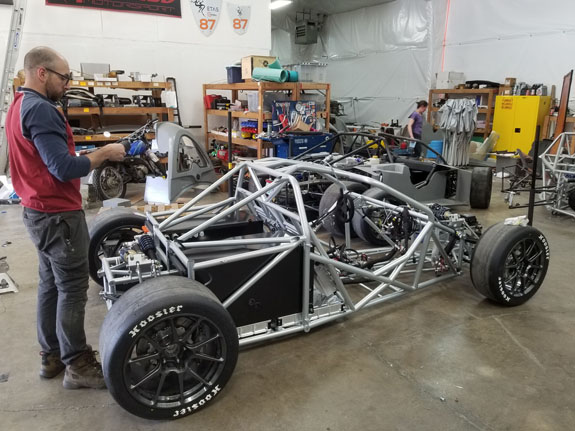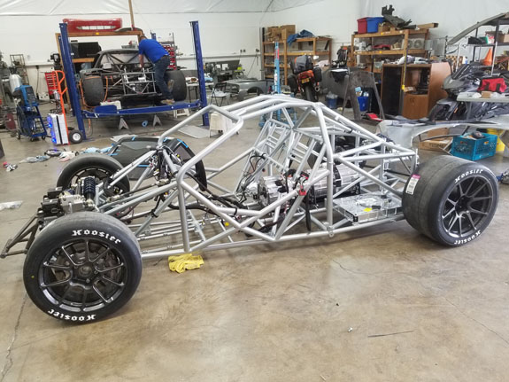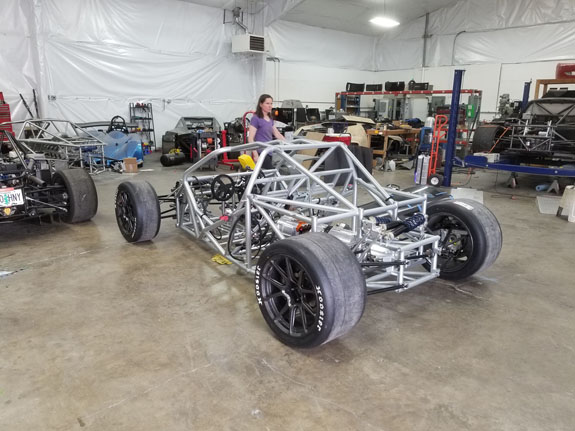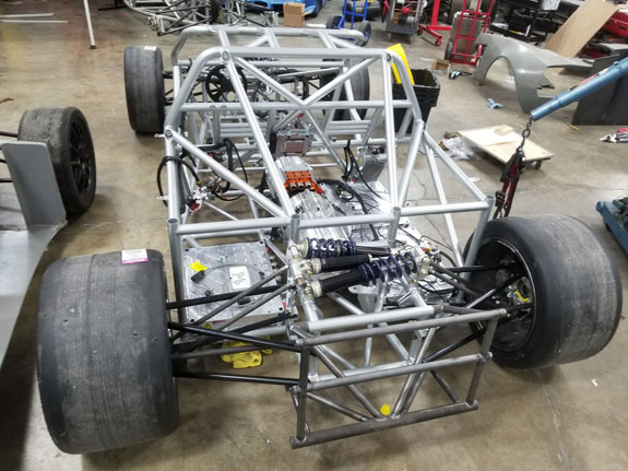 Car 2 chassis assembly. We didn't get it running in time (wasn't needed anyway), but it's a full set of spares and the plan is to display it at Fan Fest. Our partners and sponsors, Cascadia Motion, will transport it with their own van and trailer that are identical to ours (and will be used to transport the finished car when they take possession of it).