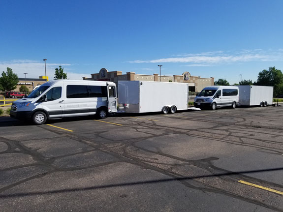 06/24/19 The two-day trip was uneventful - the new van and trailer are awesome! Comfortably cruising 75 including up and down long grades. Perfectly stable even in gusty crosswinds. It did look pretty iffy weather-wise through parts of Wyoming, but on arrival in Colorado Springs the weather looked considerably better.