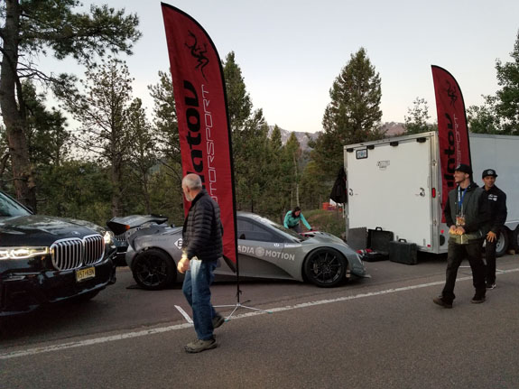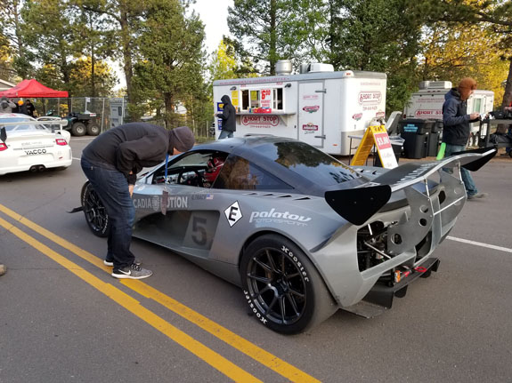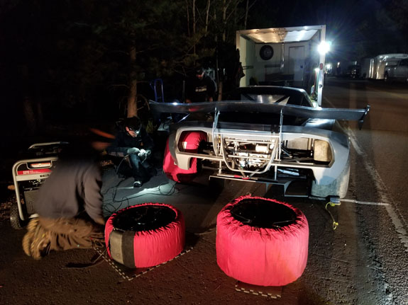 Greg completes one run, gets out and tells me the car is undrivable over the bumps. Turns out he had spun but managed to keep it on the road somehow (in the video linked at the end of the blog, look for skid marks at around 9:28 - those are ours from testing). Unless I come up with some fixes by race day the car is too dangerous to run - Greg says that if he drove slow enough to be safe there's no point to even bother. This is coming from the guy who in 2012 crashed his Ducati in practice, broke a leg and a vertebra, raced anyway and became the first rider to get under 10 minutes. He is not one to give up easily so I have to take this very seriously. OK, I've got a problem to solve, away from the shop, and we won't be testing up here again. Tomorrow is qualifying on the lower section which is much smoother, so we will still do that while I try to come up with a fix. 6/26/19 Qualifying day on the lower section. Given that on race day weather moves in by early afternoon, qualifying well is a prerequisite for having a good run. The pavement is smoother down here so this helps. But our tires are too hard in compound (S100 is all that's available from Hoosier in our sizes, which is an endurance tire). Tire warmers help but only just.