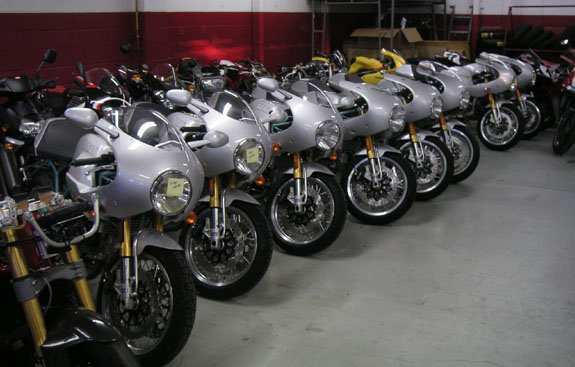 Motocorsa is probably the only dealer to get eleven of these (I was the second customer to actually take delivery - waited a day too long :). Seeing the remaining bikes all in a row is quite a sight... Then, mine was fired up and rolled out.