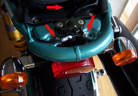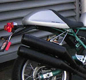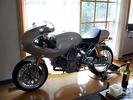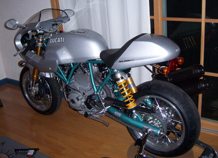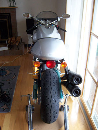 Cheers! 01/20/06 (updated 01/21/06) One of the consequenses of staring at the bike in the livingroom every day is that I start envisioning ways to modify it. In particular, the whole rear fender arrangement is clearly there for regulatory reasons and while Ducati made a valiant effort to make it fit the styling of the bike, it doesn't really. Looks more like an odd appendage of some kind, especially with a license plate mounted.
