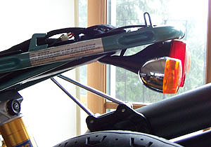 A quick turn-signal check verifies that I've got it right and all is well. The bike looks more compact and even lighter somehow (ok, it actually is but only by 3 pounds). Cool. The whole procedure takes about a half hour with no visible mods to any stock parts, with all stock hardware. Highly recommended to anyone who owns one of the Sport Classics. It's easy, it's reversible and it's free :)