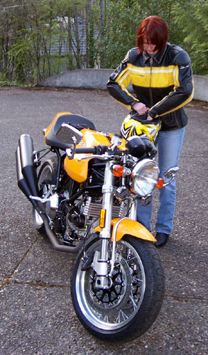 Even though the new mirrors are smaller overall, they work better because they actually show what's behind instead of mostly my elbows. Not exactly cheap at $150 for the pair but not outrageous either and the quality is very nice. Plus they're a lot easier to remove/install at trackdays. 04/23/06 The beautiful weather lately was too much to resist - had to do a ride. This one was the longest so far, going to Cannon Beach on the coast via some twisty backroads, then running route 53 before returning home. A little over 200 miles in all, this is my customary break-in route for the various vehicles - the Elise, the Box, the Mini and now the PS. It has a good variety of roads and surfaces and it's both fun and scenic. The pace is still fairly sedate while Tracy is getting used to her bike but she's progressing well and while I still play run-away-then-wait on tighter roads, the long sweepers are not an issue. This helps the overall comfort because there is some support from the wind at speed. The PS is not a very comfortable long-distance mount. This ride is about as far as I'd want to go on it in a day. The aggressive riding position, the firm suspension, the stiff clutch and some driveline lash all add up to an experience that wears on you after a while. Great in the twisties but not so much on long straight runs. It should be a very fun track machine though so I'm looking forward to completing the break-in (440 miles on the clock so far, out of 600 needed) and seeing how it does at PIR. That said, overall the ride was a very enjoyable experience despite the growing discomfort and I felt that the relaxing hottub soak afterwards was well earned. Of course there was a reminder of the variety of unexpected hazards that await a motorcyclist - a bee-type insect of some kind got into my helmet and stung me. Not pleasant, although fortunately I'm not allergic to bee stings so it was only an annoyance rather than an emergency. Had to pull over and get the thing out of the helmet. Still beats hitting a hawk, as I did on the track at 135mph a while back...