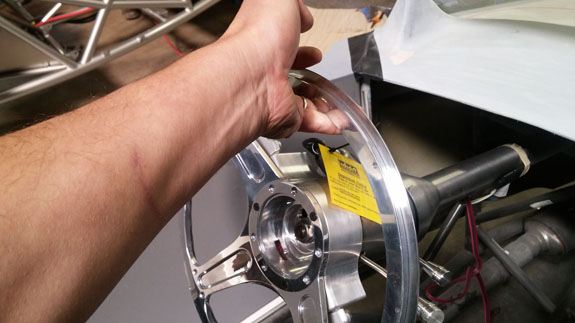 The pedals themselves are same as in the D2 but all the mounting structure and linkages are quite different. The next step is to fabricate all the pieces and test them. But first, a quick reality check to make sure the steering wheel clears the door side panel in its intended position.
