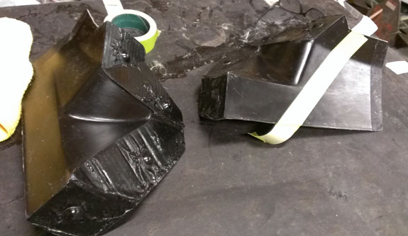 After the mold is fully cured it is removed, cleaned and trimmed. Then the temporary buildup is cut out (I always cringe when destroying plugs, knowing how much work went into making them, but it's all part of the process).