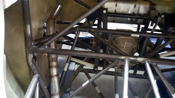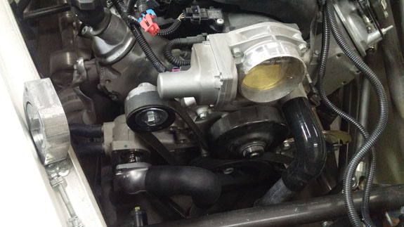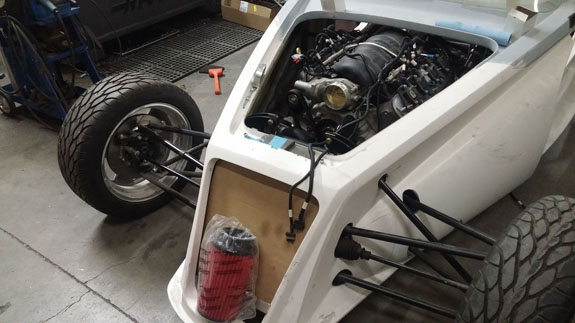 There are also custom alternator brackets and a lot of other things. Like figuring out the wiring harness, or more specifically how to mate the GM engine harness to the aftermarket transmission controller and then to the rest of the car.