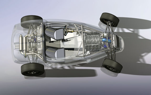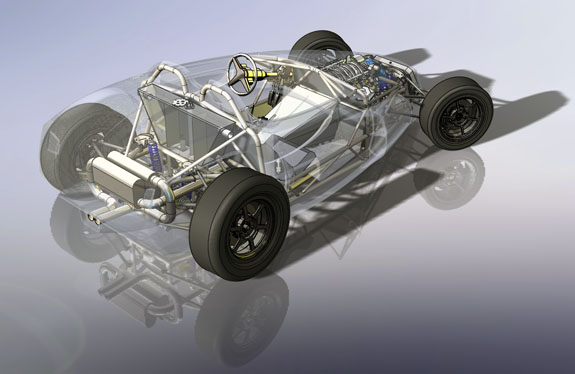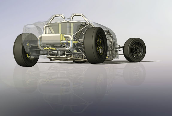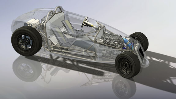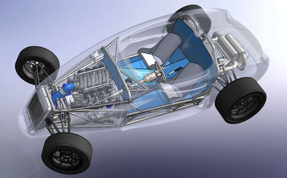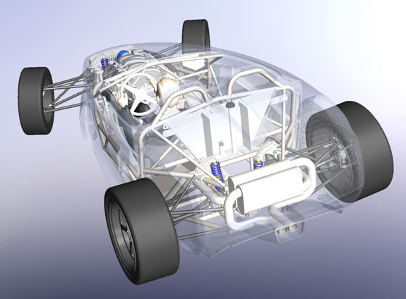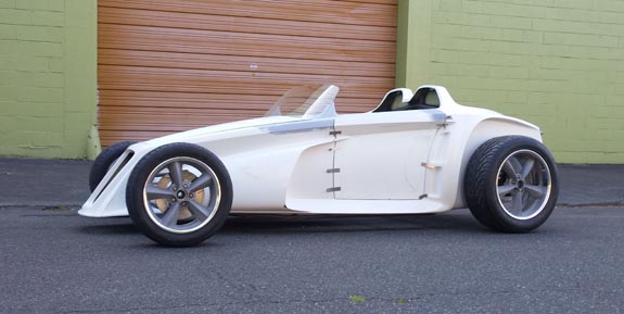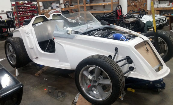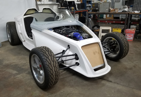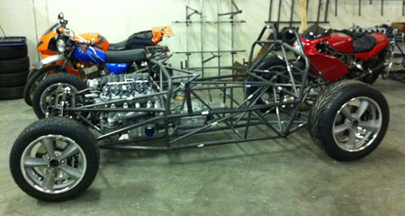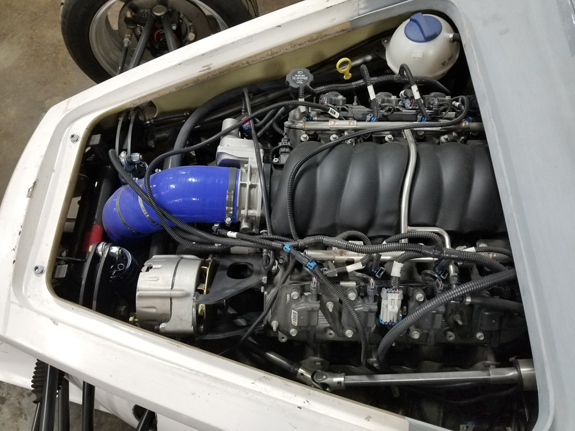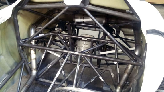 The specs: - Chromoly space frame chassis with double-wishbone pushrod independent suspension front and rear. - LS3 'E-Rod' V8, 430hp, 420 lb-ft, 50-state emissions compliant, stock GM ECU and wiring harness, brand new, with factory catalysts and custom stainless dual exhaust cat-back. - GM 4L65E automatic transmission with aftermarket shift controller, brand new. Custom aluminum driveshaft by DriveshaftShop - Ford 8.8" rear end with LSD, aluminum housing (Cobra). - Weight ~1,900 lbs, 50/50 distribution - Wheelbase 105", length 150" width 76" Chassis: