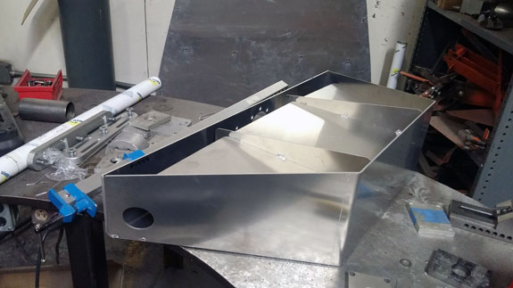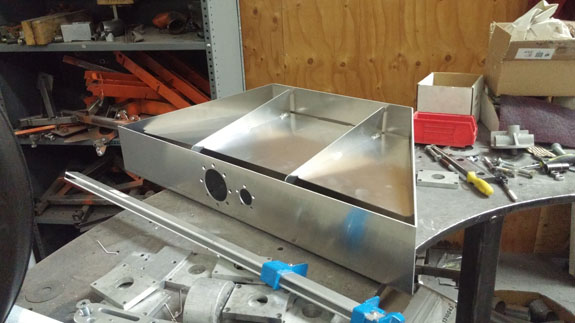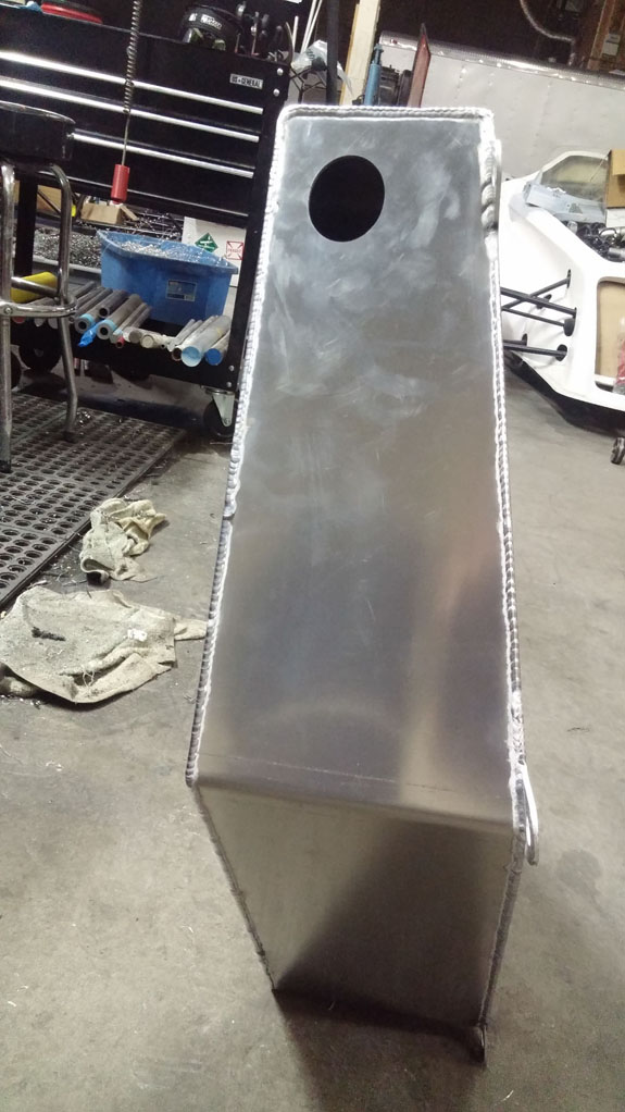 At this point we're waiting for the filler tubes to come in. Once they do, we'll finish the welding and test for leaks. Then it can all be assembled. This is a good example of the custom design and fabrication we can do. 07/21/16 Haven't posted on the Stiletto blog in a while but work has been going forward. The fuel tank is now complete with internals and installed, and we're figuring out the plumbing.