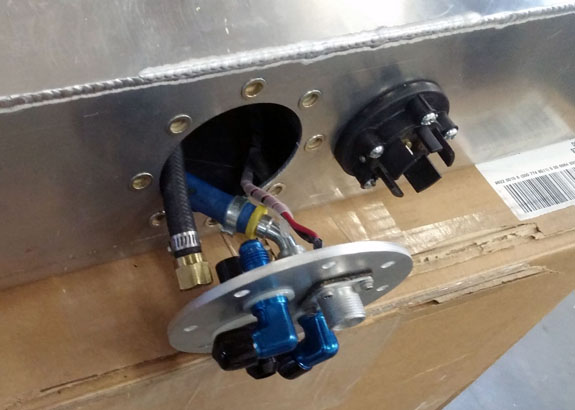 Custom baffled aluminum fuel tank with in-tank Walbro pump: