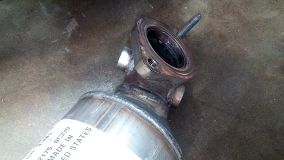 The exhaust is squeezed in there as well, and after bolting everything in and moving on to wiring, we found that the forward O2 sensors on both sides interfered with frame tubes. So out came the exhaust, new O2 bungs were welded on to point the sensor in the opposite direction, old ones plugged, and everything reinstalled.