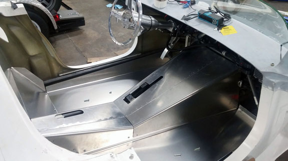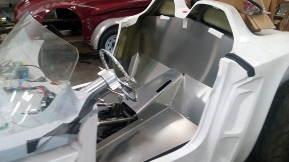 Like everything else, the interior is a 3D puzzle with some things that are movable, and others that are definitely not. We'll get it sorted. 11/26/16 Some more progress on the interior paneling. We had to cut the center tunel panels and then splice them together. Worked out well and now it fits.