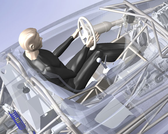 Using the same battery as the D2 and the existing battery tray design is most efficient, so this is what we did. The battery is mocked up with a cardboard box to make it easier to handle. Standing next to the car in a normal situation it won't be visible. I just switched to a new workstation with a RadeonPro WX7100 graphics card so below are screen captures of real-time graphics display, just because they look cool.