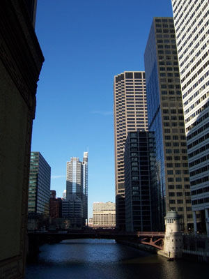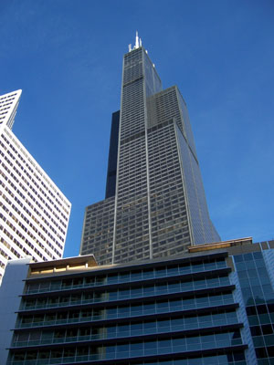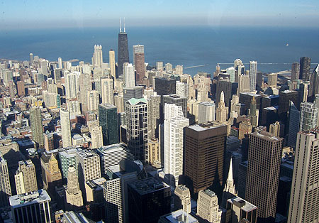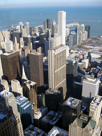 With the hotel being right downtown it was easy to walk around. The city impressed me with how clean it is (at least the parts I saw). The sheer size of it is overwhelming though and the streets feel like canyons between the towering skyscrapers. Intimidating, in a way, and although it is clear that some effort is being made to give the place a more comfortable feel, to me it still comes across as a bit cold and impersonal. And speaking of cold, with the low temperatures and pervasive wind, staying warm was at times quite a challenge. And supposedly it was unusually mild for the time of year. This is when the famous Chicago 'stuffed pizza' really hits the spot. Other places what passes for 'Chicago-style' pizza is just something with 3x the bread and same amount of ingredients as the regular fare. Done the right way, the crust is still very thin but shaped into a dish, then filled with about a 1/2" layer of cheese and then toppings and sauce on top. Awesome. In general, the food was excellent - from the pizza to the various restaurants and cafes. Even the restaurant at the hotel was great. The first place I visited was the Sears tower, it being only five blocks from the hotel. Both the size of the structure and the view from it really bring home the scale of the city. It's immense.