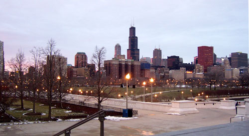 12/09/06-12/10/06 A quick visit to Chicago. I've visited before on business but never got to see anything besides airport, hotel and convention center so I couldn't really say I'd been here. This was more of a chance to see the city, albeit a brief one. On the way in the sunset provided a neat view out the window...