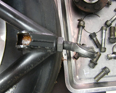 Below is a good illustration of why putting rodends in bending on the lower suspension arm is not a good idea. Yes, I can and will do better.