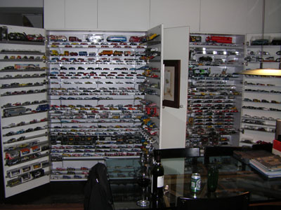 In the evening we are invited to visit another of Steve's friends. Clive is a partner in a company manufacturing high-end scale car models and is an avid collector himself. The display cases at his house are quite amazing.