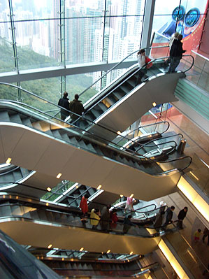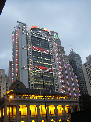 02/21/08-02/28/08 A trip to Hong Kong, China and Macau - what would prove to be one of the tougher trips I've taken. This was M's first visit to Asia and was meant to be a mixture of business and a pseudo-honeymoon for us. But it did not start smoothly. Leaving Tokyo on the connecting flight, we taxi out to the runway, start the takeoff run, then the engines shut down. Apparently there is a problem with the landing gear. We taxi back to the gate and spend the next three hours couped up with 430 other people in a plane with no air conditioning. Eventually we get going again and get into HK about 2am. All transportation has stopped but the airline arranges a shuttle to the island. We have to take a cab from the dropoff to the hotel. I am amazed when after asking a woman on the street where we can change money at this hour she just hands us cab fare and refuses to take anything in exchange. Some people here are very cool. At this point we are both extremely tired and just want to get there. So getting out of the cab I start heading to the hotel lobby, then realize I don't have my laptop. It's too late - the cab is gone and the laptop will never be seen again. Damn. A bunch of stressed-out running about, phone calls to cab company and police, all to no avail. Finally at 5 am I am able to pass out. The following morning a persistent cough indicates that time spent sitting around on the plane did not work in my favor. But we head out on the town anyway and still manage to enjoy quite a bit of it. A lot of construction has taken place since I was here last, including a massive new shopping center at the top of Victoria Peak.