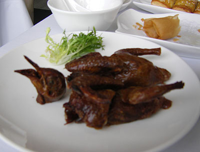 There are several nice restaurants up there with great views and we ate at one of them. Of course I couldn't resist something called 'crispy pigeon' - quite tasty, actually. No I didn't eat the head. After the meal, some more roaming around town and a trip on the Star ferry across the bay to watch the nightly light show.